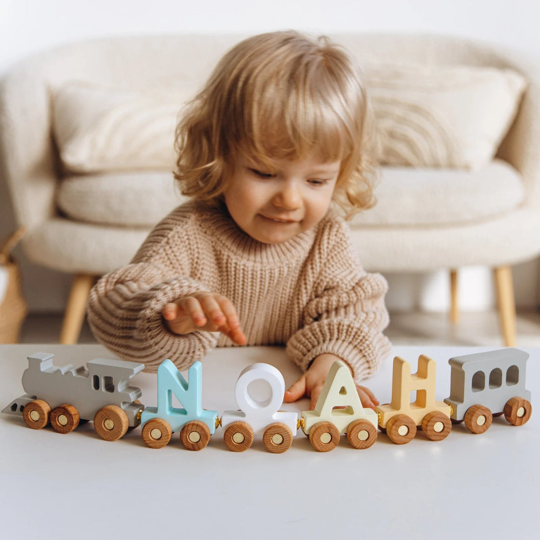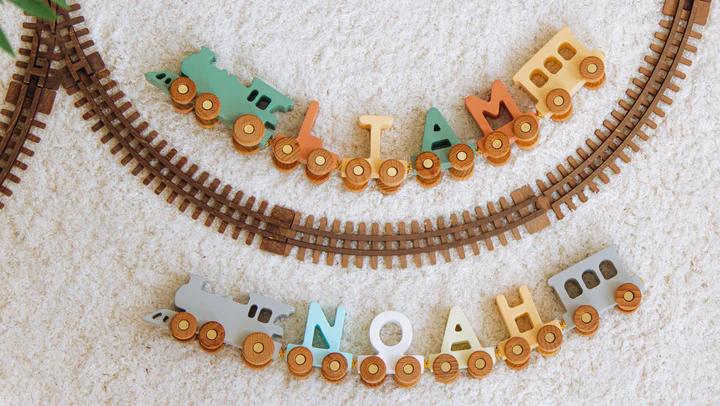 Personalized Train Name With Magnets First Birthday Gift Baby Toys Wooden Train With Railway Fidget Toys For Kids Nursery Decor