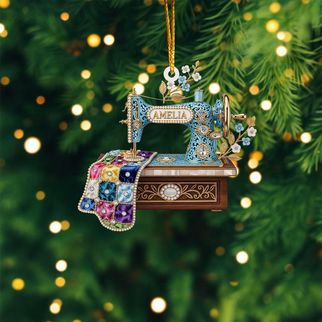 Personalized Sewing Machine Ornament, Custom Quilter Christmas Decor, Quilting Studio Decor