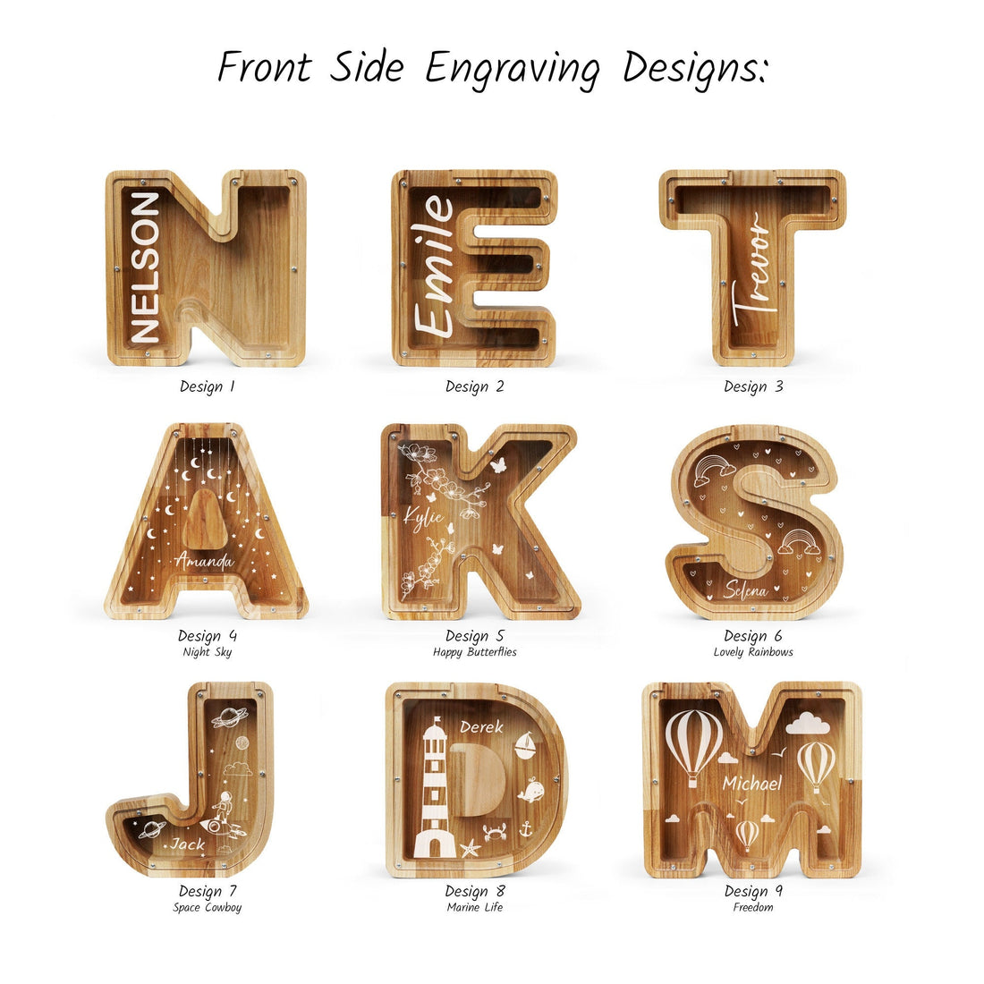 Personalized Large Wooden Kids Letter Piggy Bank, Wood Gift For Kids, Custom Name Coin Bank, Wood Alphabet Letter Bank Money Box Birthday