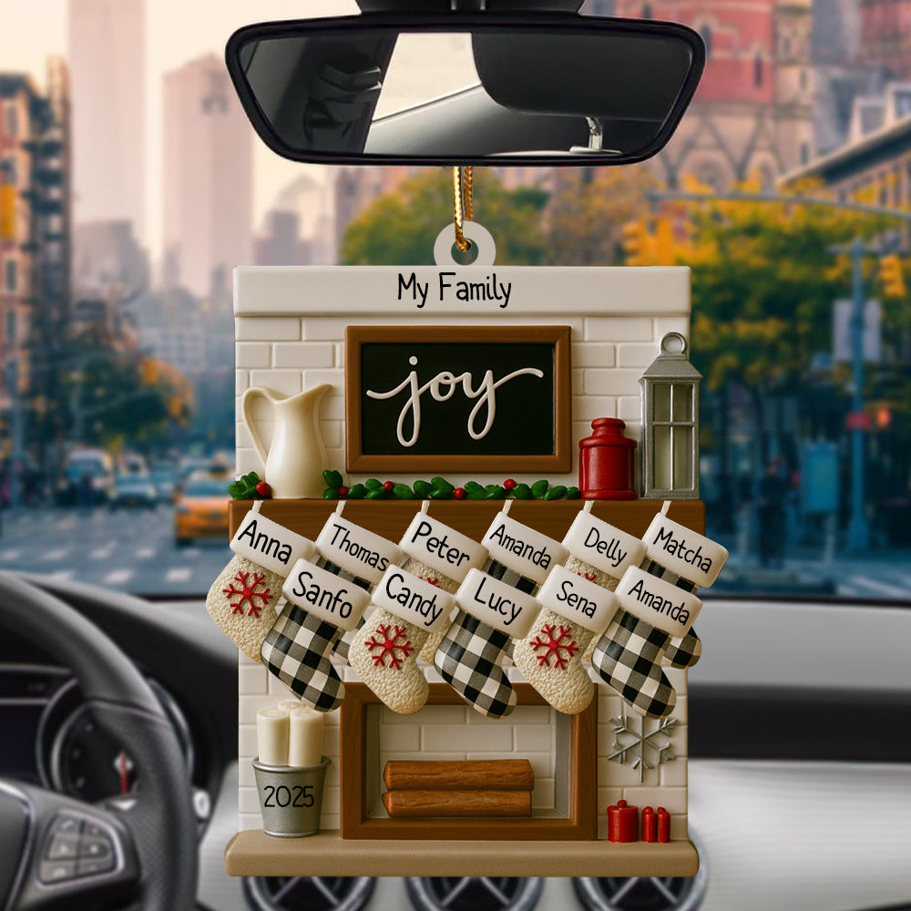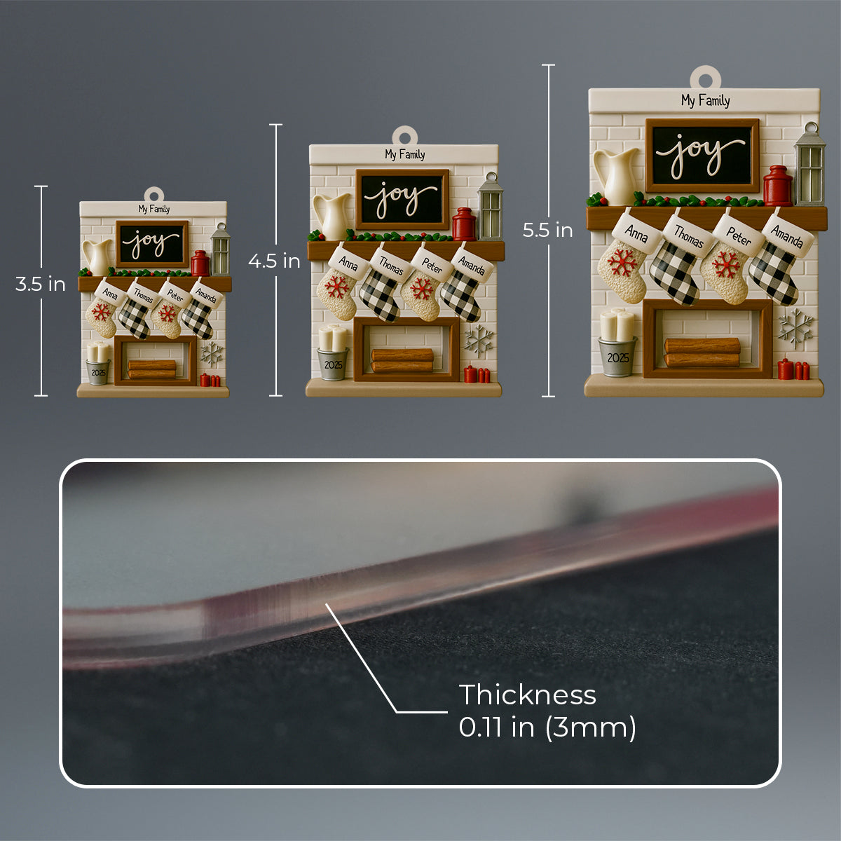 Fireplace Mantel Family Stocking Ornament Personalized Joy Ornament for Christmas Family of 2 3 4 5 6 7 8 9 10 11 12- Family of 11 Ornaments