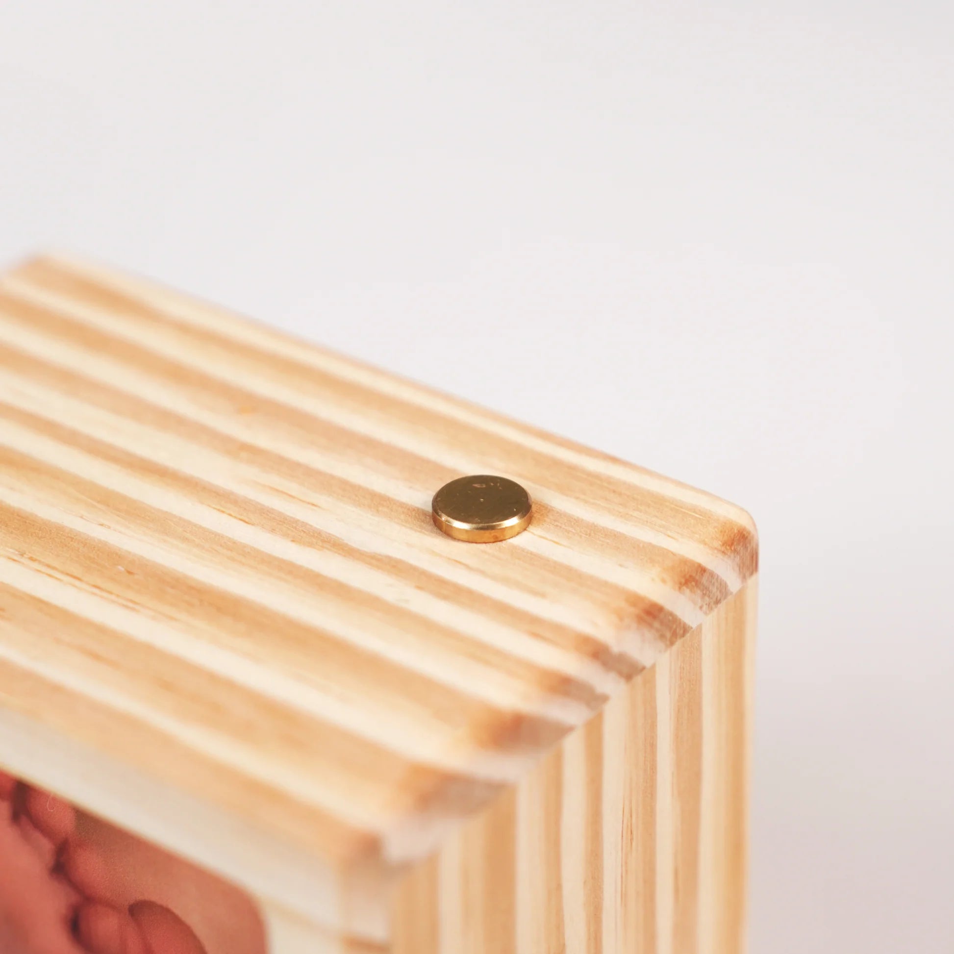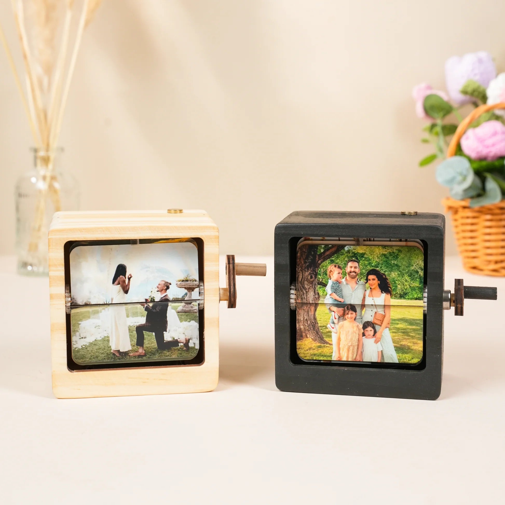 Designed with a manual crank mechanism, each turn brings your memories to life - one frame at a time. The built-in light enhances the display, turning it into a warm, thoughtful piece of home décor.