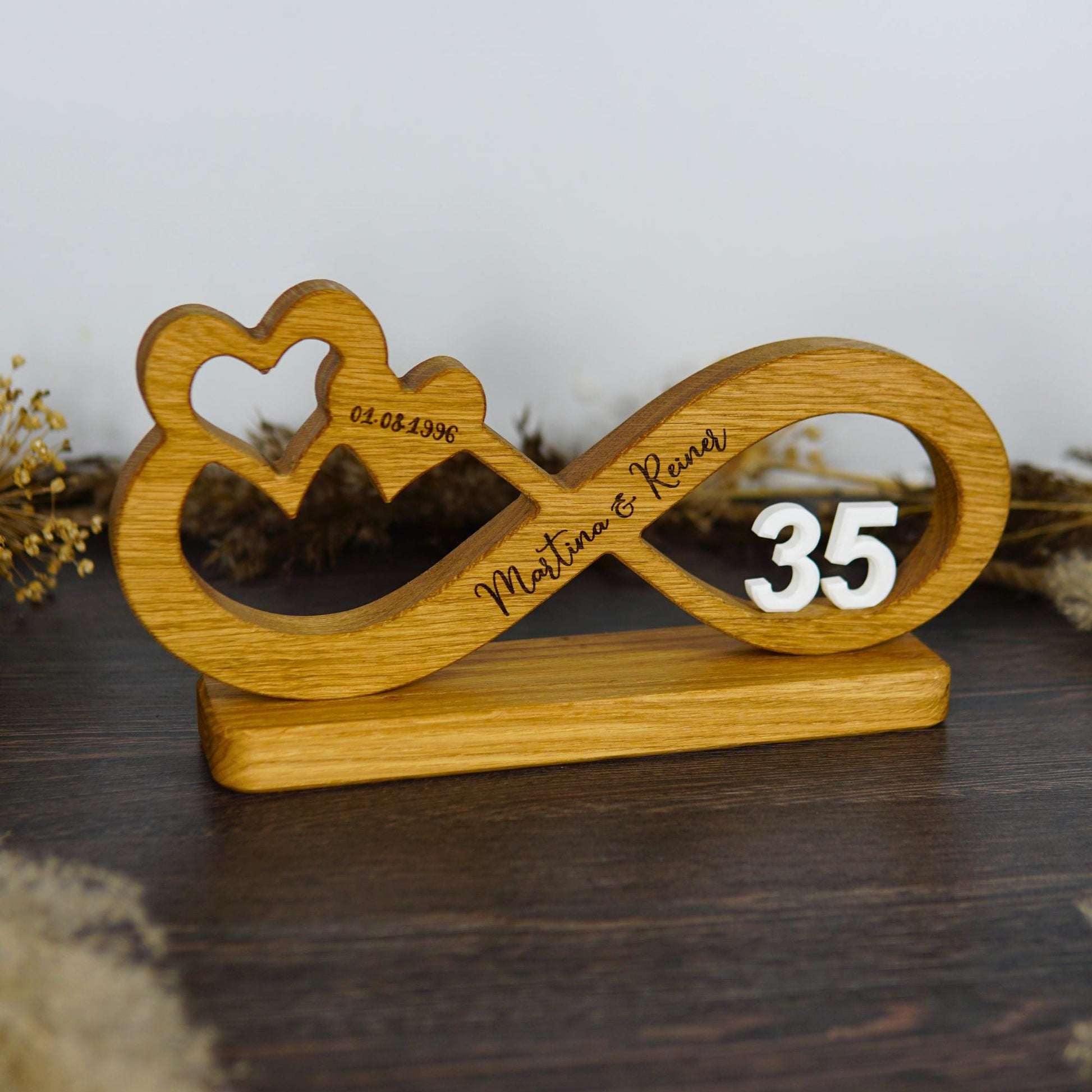 A gift as lasting of marriage: Our infinity symbol made of solid oak with a custom engraving is the perfect gift for a canvas wedding. It symbolizes permanence, togetherness, and eternal bond – a unique keepsake for this special day.