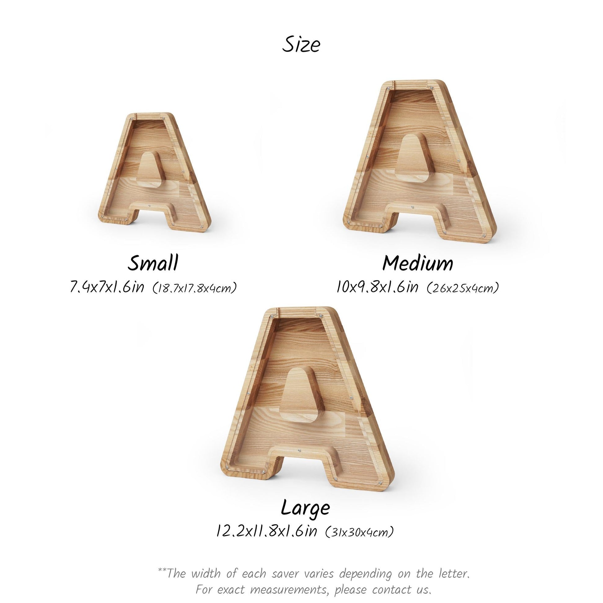 Choose from two sizes. Please note that the exact dimensions may vary depending on the letter.